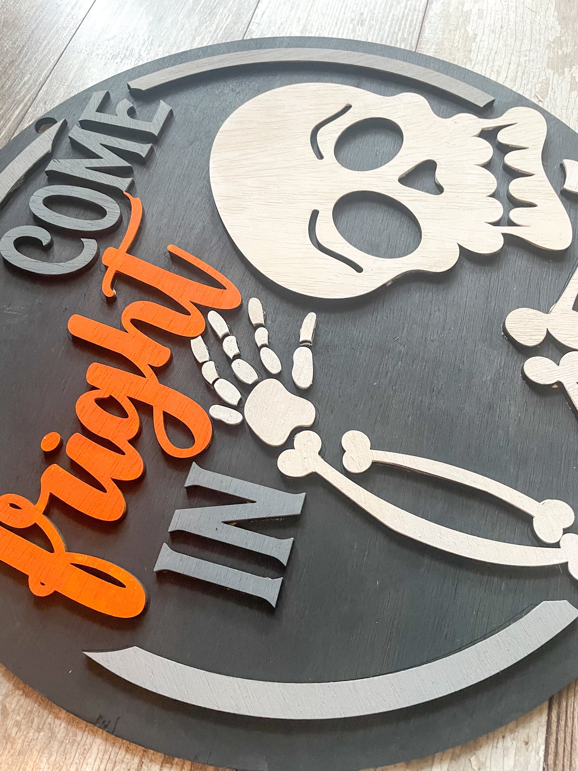 Our 18” Come Fright In Door Hanger is the perfect welcome sign for your door for Halloween!