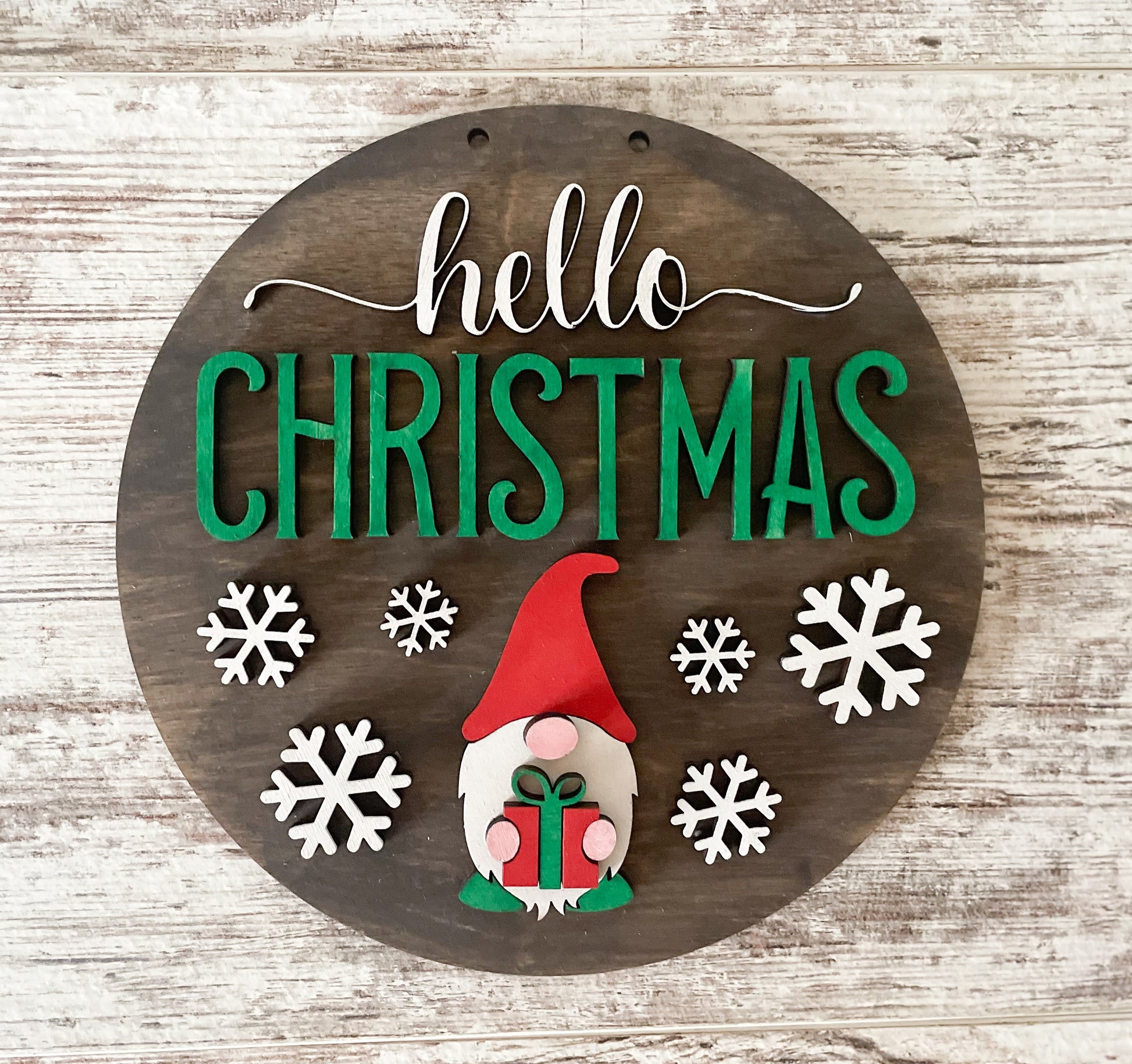 Our 18” Hello Christmas Gnome Door Hanger is the perfect welcome sign for your door for the Christmas season!