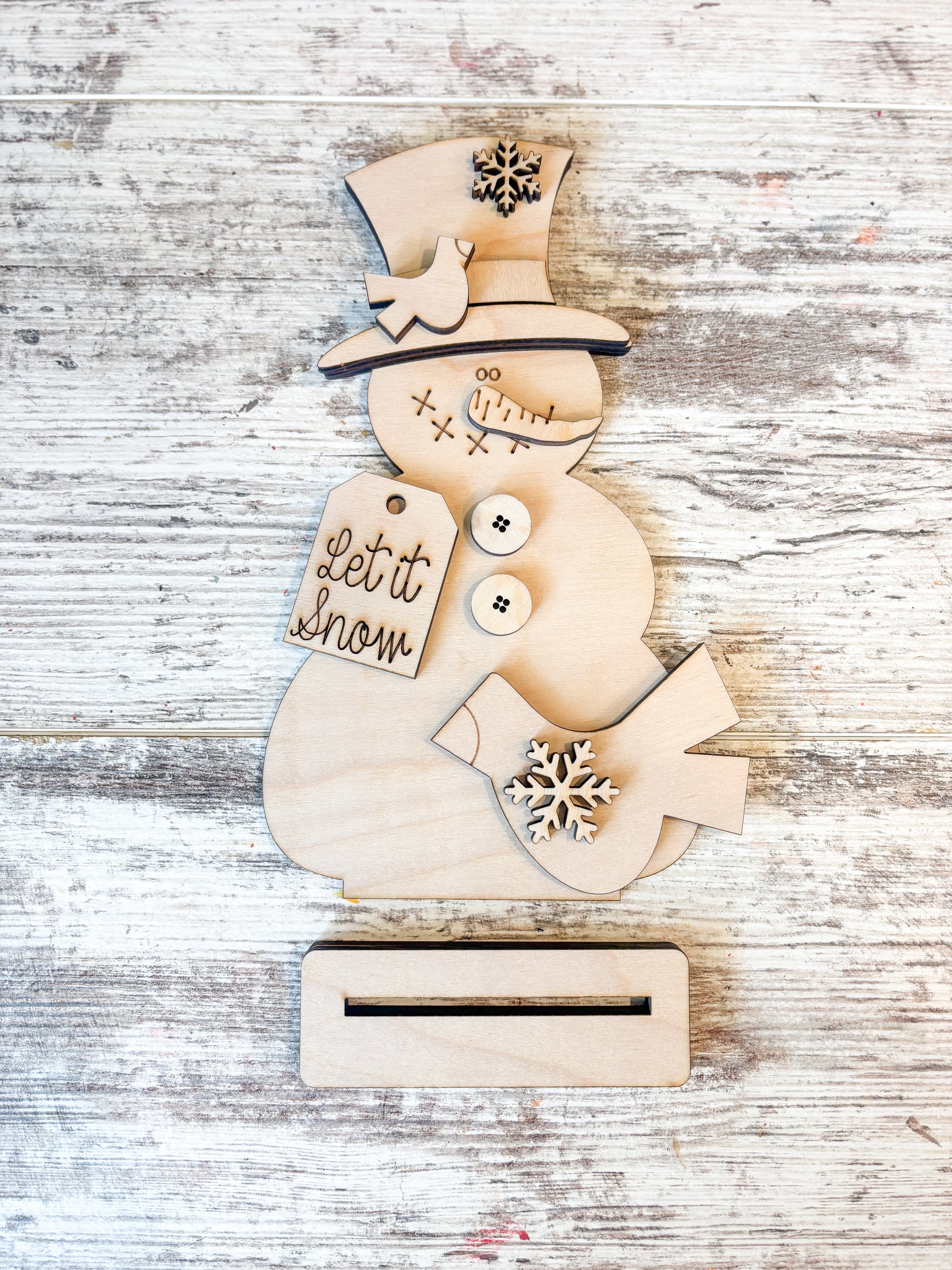 This sweet little snowman with the cardinal bird is a favorite! Each kit includes al of the pieces shown. He stands about 9" tall.